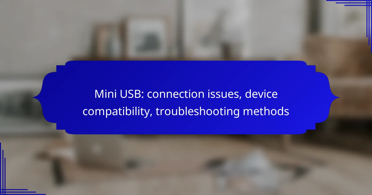 Common troubleshooting methods for Mini USB connection issues include resetting device settings, testing with alternative cables, and checking for software updates. These steps can help identify and resolve compatibility problems effectively.