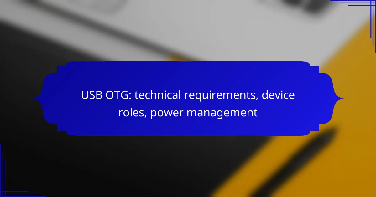 USB On-The-Go (OTG) is a technology that enables devices to alternate between host and peripheral roles, facilitating direct communication without the need for a PC. To utilize USB OTG, devices must adhere to specific technical standards, including compatibility with USB 2.0 or higher and the OTG protocol. Effective power management is essential in this context, as it allows for dynamic power allocation between devices, optimizing energy use while ensuring seamless functionality.